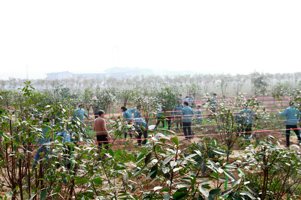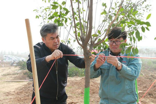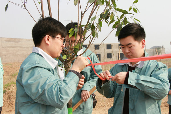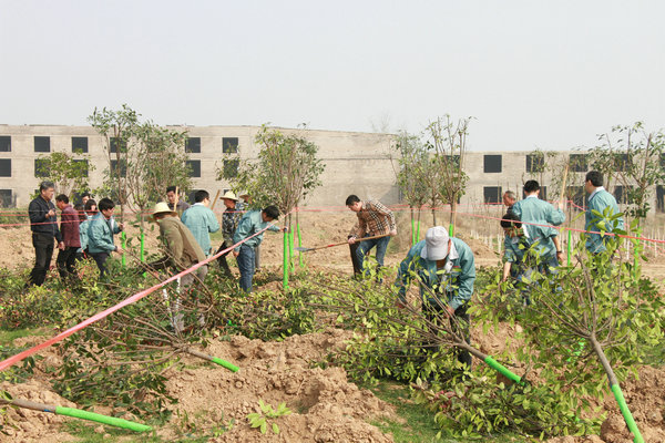 大家用繩子打好格子,保證樹木橫平豎直,整整齊齊,端端正正,如同我們基泰人一樣!