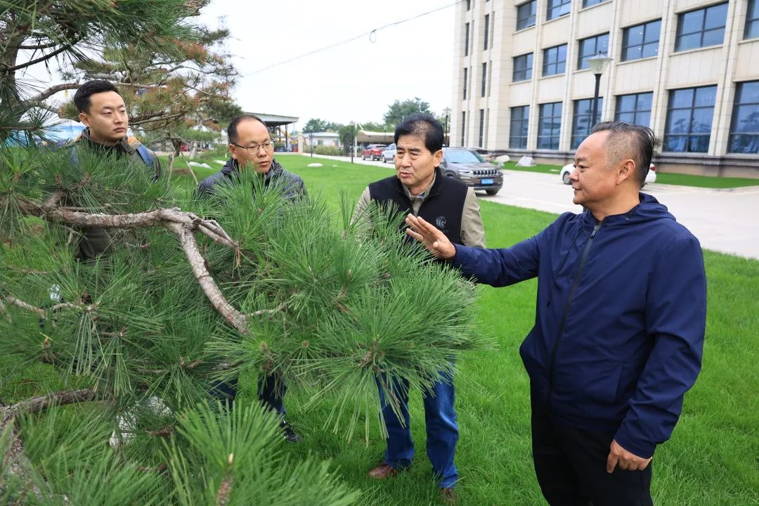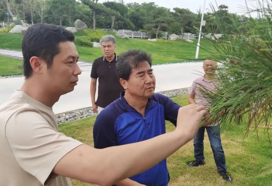 研究院科研院長(zhǎng)李樹(shù)華對(duì)基泰油松樹(shù)木進(jìn)行養(yǎng)護(hù)指導(dǎo)