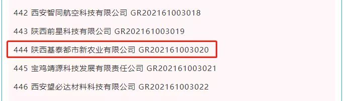 近日,科技部火炬中心官網(wǎng)發(fā)布了《關(guān)于對(duì)陜西省2021年認(rèn)定的第四批高新技術(shù)企業(yè)進(jìn)行備案公示的通知》,陜西基泰都市新農(nóng)業(yè)有限公司成功完成高新技術(shù)企業(yè)備案。此前,農(nóng)業(yè)公司已成功被陜西省科技部門認(rèn)定為科技型中小企業(yè)。本次通過(guò)高新技術(shù)企業(yè)備案,意味著農(nóng)業(yè)公司在科研工作開展、創(chuàng)新能力、人才儲(chǔ)備及科研投入產(chǎn)出等方面得到充分認(rèn)可,標(biāo)志著農(nóng)業(yè)公司在科技化轉(zhuǎn)型過(guò)程中邁出了重要一步,也彰顯了集團(tuán)體系內(nèi)以科技創(chuàng)新引領(lǐng)生產(chǎn)發(fā)展的決心。